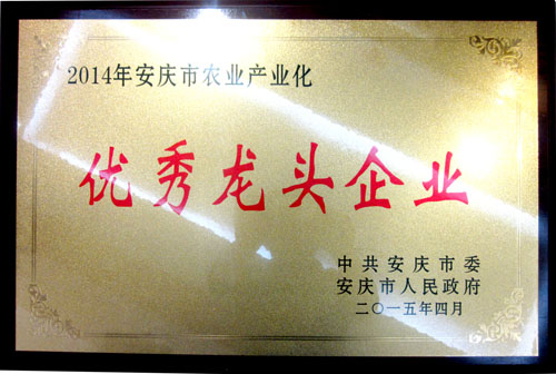 我公司于2015年4月榮獲中共安慶市委、安慶市人民政府頒發(fā)的“2014年安慶市農(nóng)業(yè)產(chǎn)業(yè)化優(yōu)秀龍頭企業(yè)”。